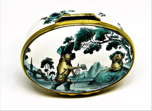 HALCYON DAYS ENAMEL BOX - ANTIQUE REPRODUCTION - WHIMSICAL COURTING DOGS - LOVE