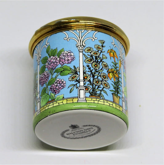 HALCYON DAYS ENAMEL BOX - GARDEN - GREENHOUSE - FLOWERS - DAISY - ROSE - LILY