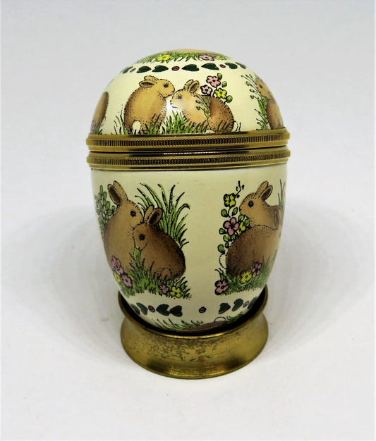 HALCYON DAYS ENAMEL BOX - VINTAGE EASTER BUNNY EGG & STAND - RABBITS & FLOWERS