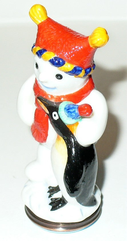 HALCYON DAYS ENGLISH ENAMEL BOX- SNOWMAN & PENGUIN - CHRISTMAS BONBONNIERE - MIB