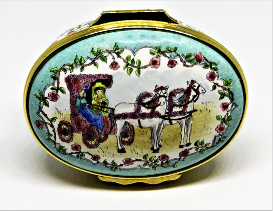 HALCYON DAYS ENAMEL BOX - FIRST TOURNAMENT OF ROSES PARADE - 1890 - PASADENA