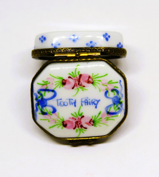 LIMOGES FRANCE BOX ~ BABY TEETH ~ TOOTH FAIRY FLORAL ~ FLOWERS ~ PEINT MAIN