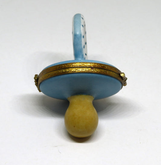 LIMOGES FRANCE BOX ~ BLUE & WHITE BABY PACIFIER ~ BLUE DOTS ~ PEINT MAIN
