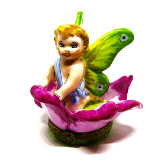 LIMOGES FRANCE BOX - LIMOGES IMPORTS - BABY FLOWER FAIRY & BUTTERFLY WINGS