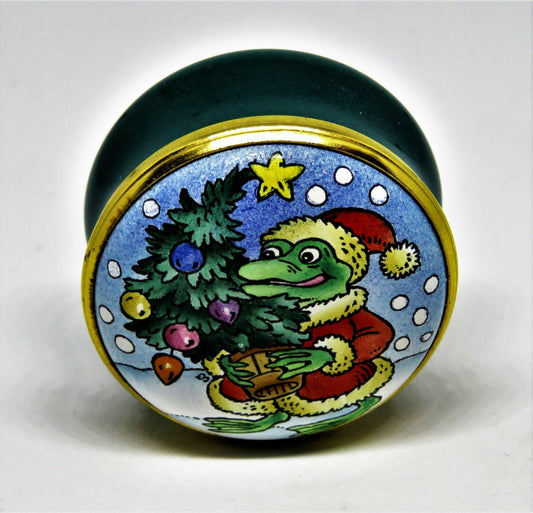HALCYON DAYS ENAMEL BOX - FROG OR ALLIGATOR SANTA CLAUS & CHRISTMAS TREE
