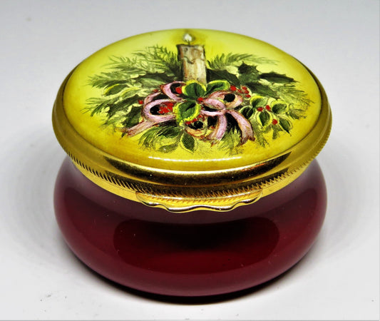 HOUSE OF ASHLEY - ENGLISH ENAMEL BOX - CANDLE & HOLLY - CHRISTMAS 1995 - MIB