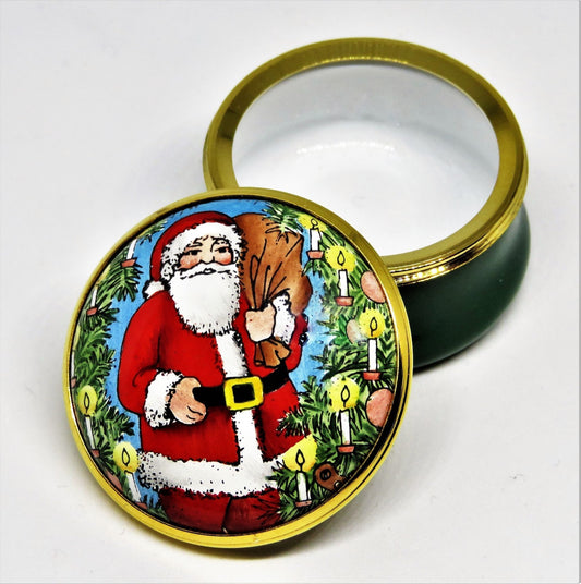 HALCYON DAYS ENAMEL BOX - CHRISTMAS - SANTA CLAUS & WREATH & CANDLES