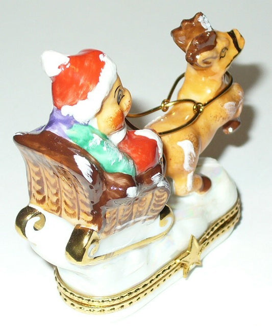 LIMOGES FRANCE BOX - CHRISTMAS - SANTA CLAUS TEDDY BEAR - SLEIGH & REINDEER - LE