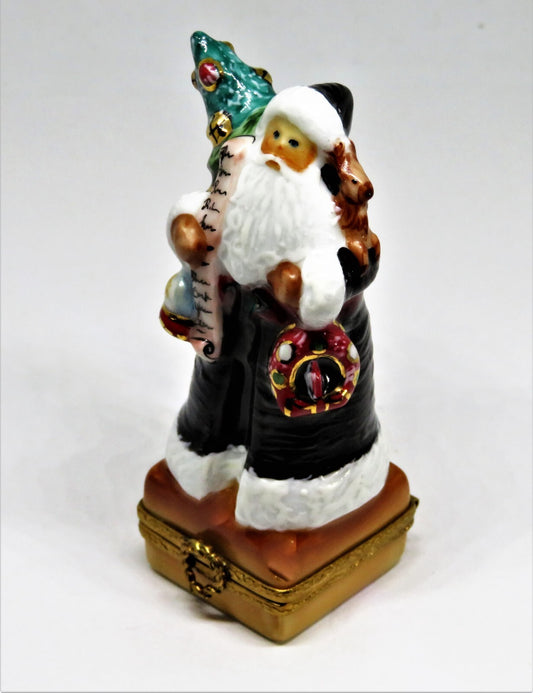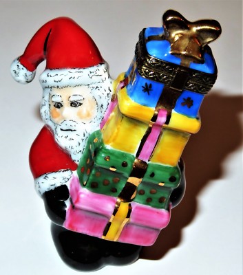 LIMOGES FRANCE BOX - CHRISTMAS - RMC - SANTA CLAUS WITH A STACK OF PRESENTS - LE