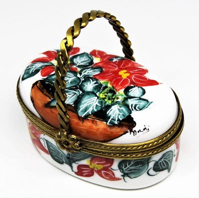 LIMOGES BOX- CHRISTMAS - POINSETTIA FLOWER BASKET & TERRA COTTA POT - TOP SIGNED