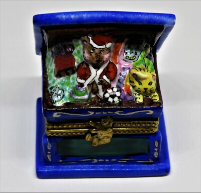 LIMOGES FRANCE BOX - CHRISTMAS - TOY CHEST & A TEDDY BEAR IN A SANTA CLAUS SUIT