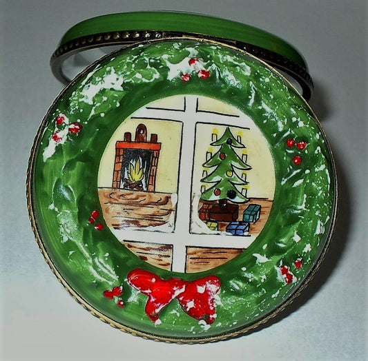 LIMOGES BOX - CHRISTMAS - WREATH & LIVING ROOM SCENE - FIREPLACE & TREE - HOLLY