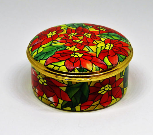 HALCYON DAYS ENAMEL BOX - TIFFANY & CO. - CHRISTMAS - STAINED GLASS POINSETTIAS