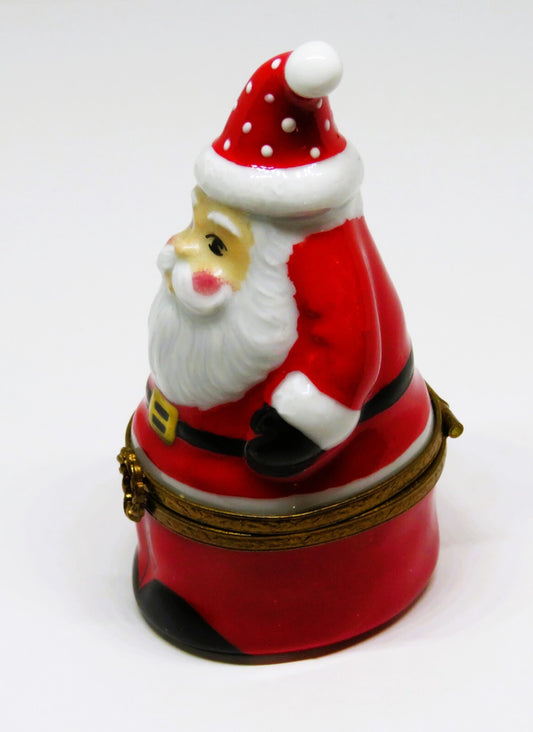 LIMOGES FRANCE BOX - CHRISTMAS - SANTA CLAUS - WREATH CLASP - HAT & HOLLY INSIDE