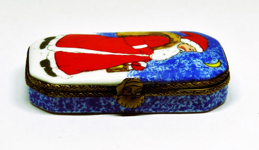 LIMOGES FRANCE BOX - OLD WORLD SANTA CLAUS & CRESCENT MOON - "MERRY CHRISTMAS"
