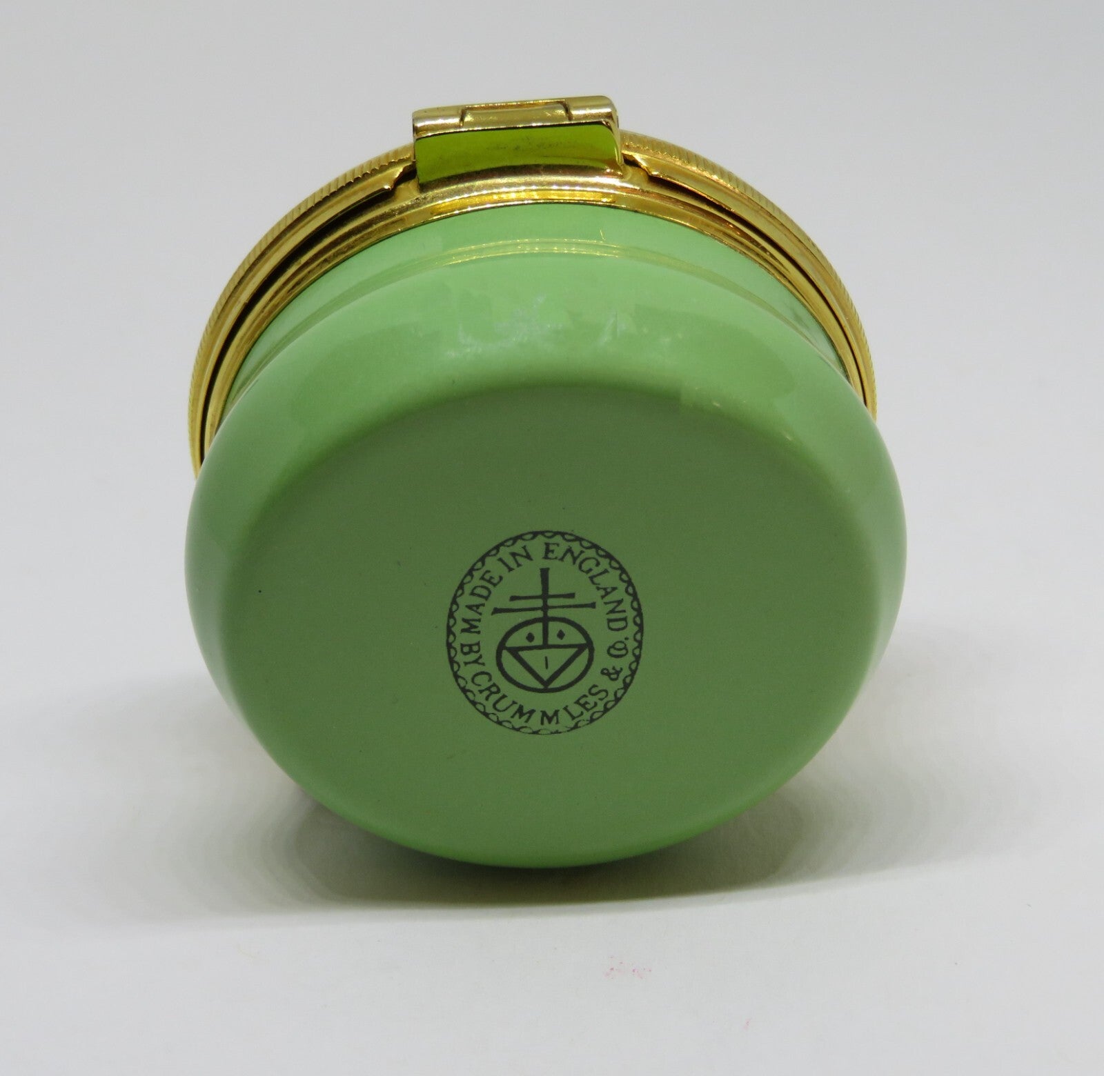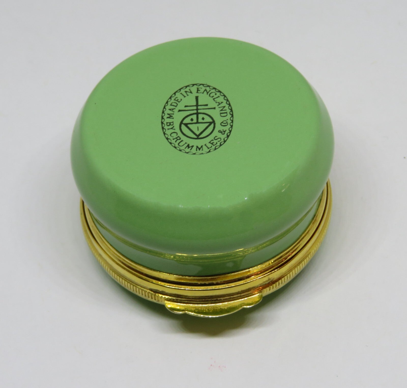 This vintage, Crummles, enamel box has an adorable, black, Scottish terrier dog, in a grassy field, with a stone castle or building in the background. "SCOTTISH TERRIER" and the dog are inside. The box has a diameter of 1.6" with a height of 1.1". "Made in England by Crummles & Co." is on the green base. PLEASE CHECK MY OTHER AUCTIONS FOR MORE BOXES - I'LL BE LISTING ADDITIONAL ONES LATER IN THE WEEK. PLEASE CHECK BACK OFTEN.