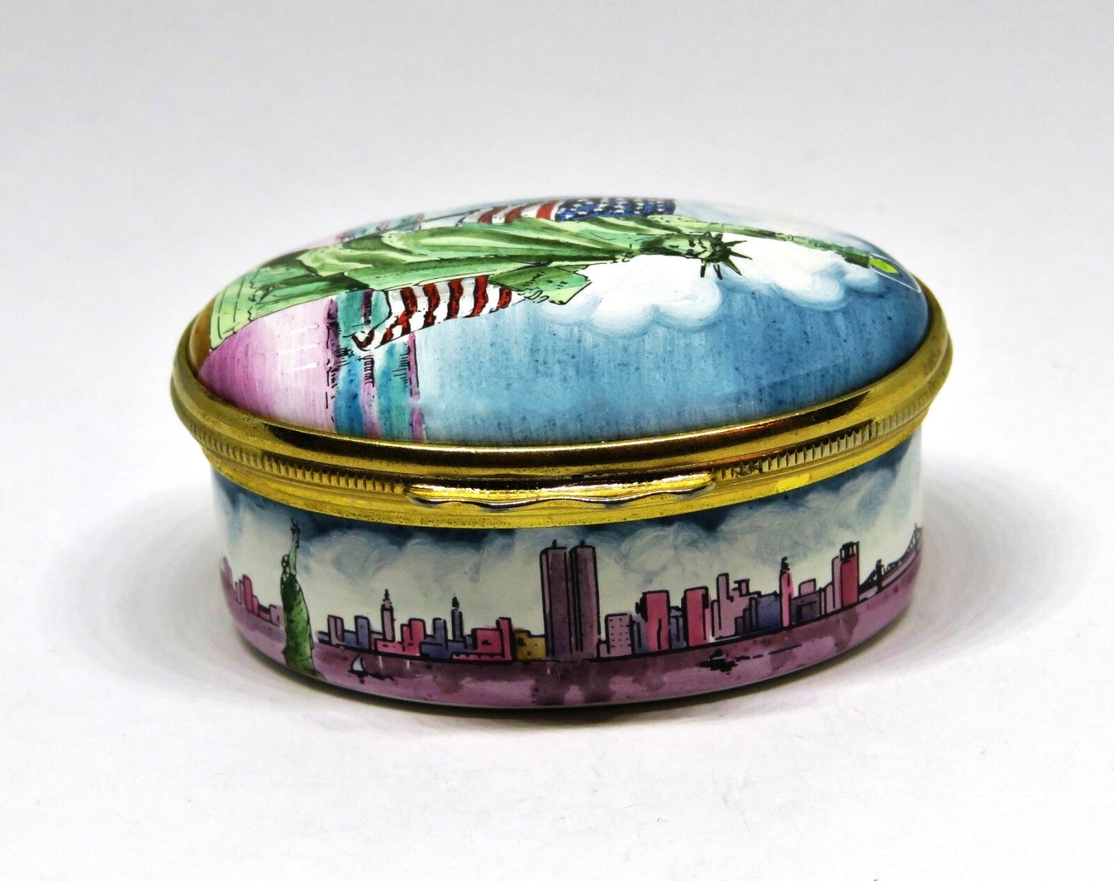 HALCYON DAYS ENAMEL BOX - TIFFANY - STATUE OF LIBERTY - NEW YORK CITY - JULY 4TH