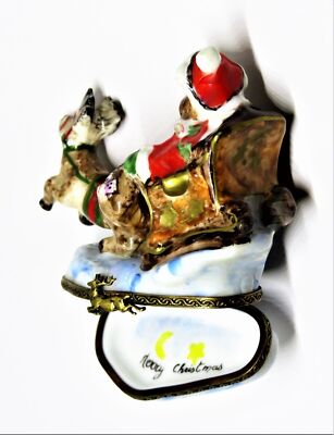 LIMOGES BOX~ CHRISTMAS ~ SANTA CLAUS TEDDY BEAR ~ SLEIGH & REINDEER ~ PEINT MAIN