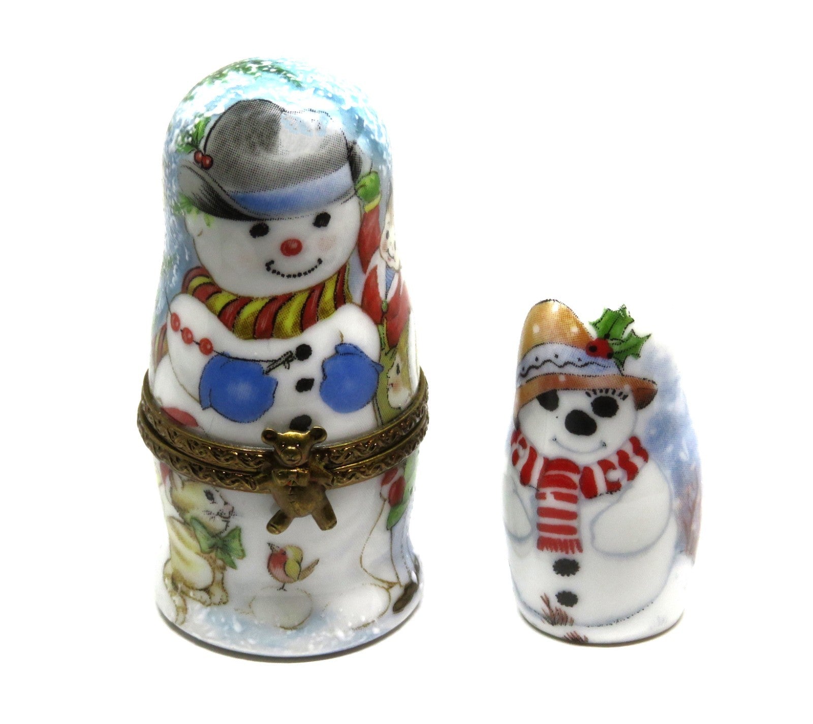 LIMOGES BOX - PARRY-VIEILLE - CHRISTMAS - NESTING SNOWMAN & LADY SET - 2 PIECES
