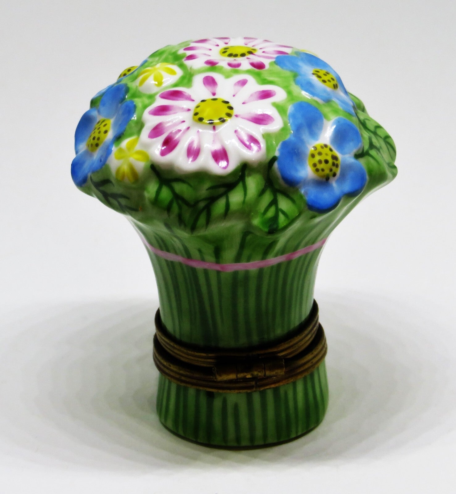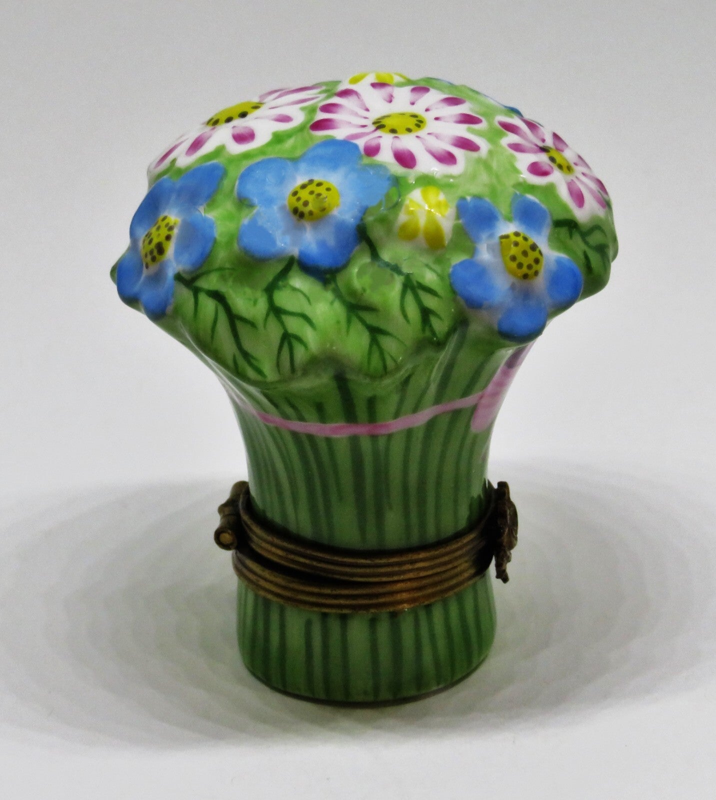 LIMOGES FRANCE BOX~ CHAMART ~ BOUQUET OF FLOWERS ~PINK RIBBON & BOW~ ANNIVERSARY