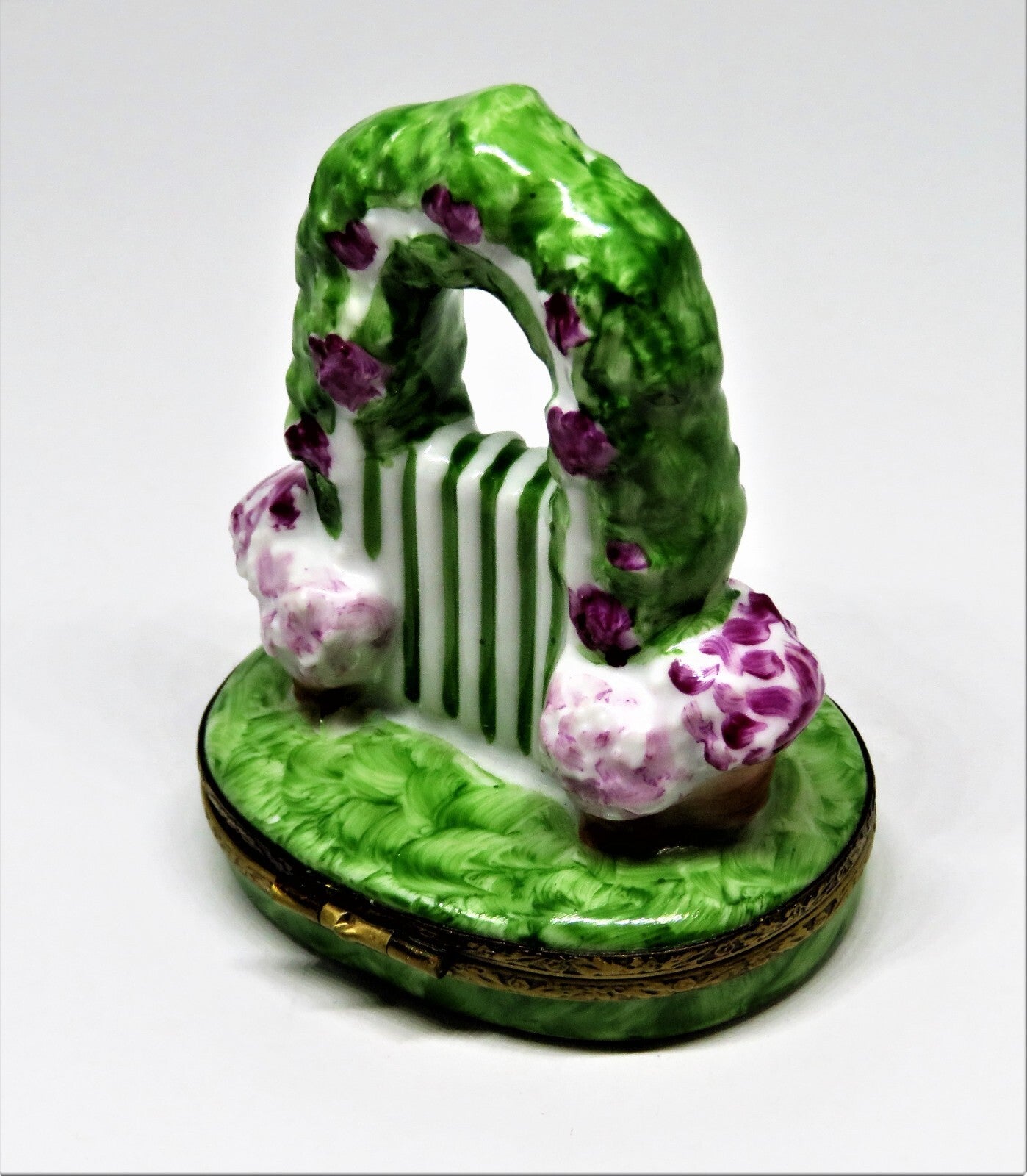LIMOGES FRANCE BOX - EASTER BUNNY & ARBOR OF PINK FLOWERS & GARDEN GATE - RABBIT